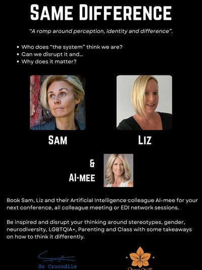 Book Sam, Liz and their Artificial Intelligence colleague Aimee for your next conference, all colleague meeting or EDI network sessions.